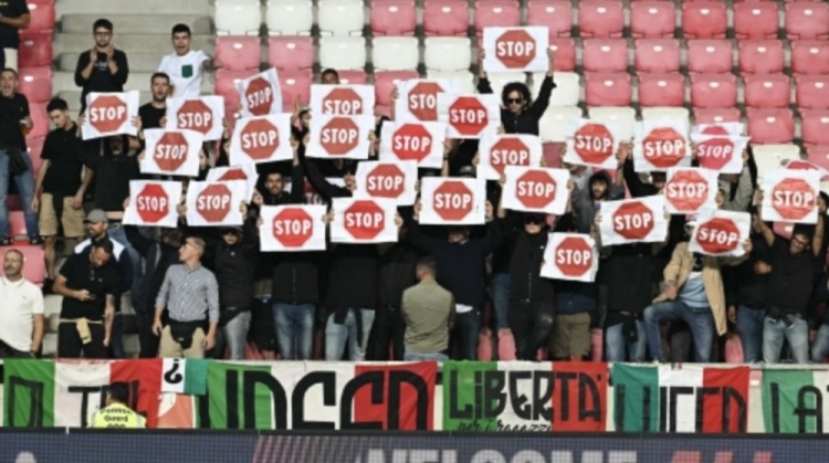《米兰体育报》表示,在比赛开始前播放以色列国歌时,特意身穿黑色T恤的意大利球迷们转身背对球场,以此表示抗议。之后意大利球迷们还在看台上举起约30个呼吁停止战争的标牌。当地警方出动了大量警力,避免了意大利和以色列球迷之间出现直接接触。